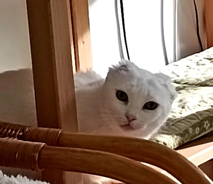 Nava ist leider, wie es öfter bei weißen Katzen vorkommt, taub. Auf Grund einer Krebserkrankung durch Sonneneinwirkung mussten ihr beide Ohren amputiert werden, was bei so hellen Tieren traurigerweise nicht ungewöhnlich ist.