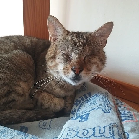 Wonki (*07.05.2021) wurde in schlechtem Zustand in Madrid gefunden und bei ANAA im Tierheim aufgenommen. Leider waren seine Augen, vermutlich durch unbehandelten Schnupfen, bereits so stark geschädigt, dass die Augenhöhlen nur noch operativ verschlossen werden konnten, um weiteren Infektionen vorzubeugen. Bei der routinemäßigen Aufnahmeuntersuchung wurde außerdem noch festgestellt, dass Wonki FIV positiv ist. Jedoch können auch FIV-positive Katzen ein schönes, langes Leben haben, sofern sie möglichst stressfrei in einer ruhigen Umgebung leben. Bitte befragen Sie einen Tierarzt Ihres Vertrauens, um sich über FIV zu informieren; grundsätzlich ist zu sagen, dass FIV unter friedlichen Katzen kaum übertragen werden kann.
